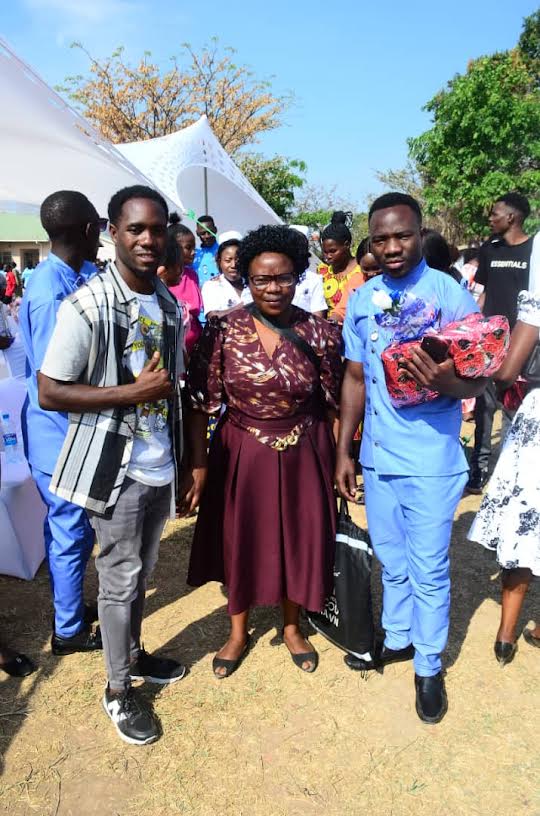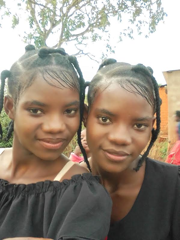Collins Mwamba between Mary and Memory Mwamba, his twin nieces