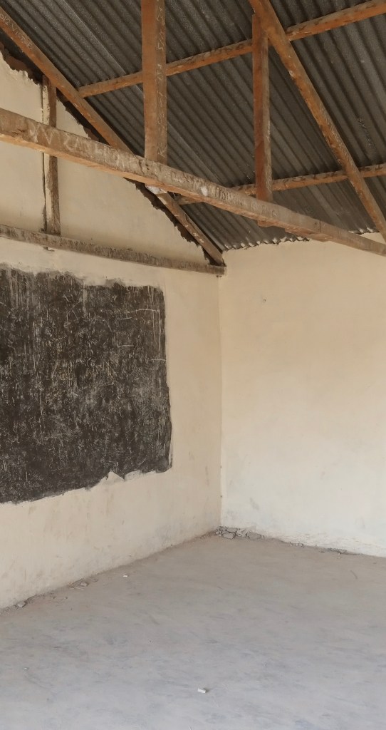 The old school building is still in use. Nothing has changed, and the government has not updated or improved it. It still has small windows, no doors, no glass in the windows.